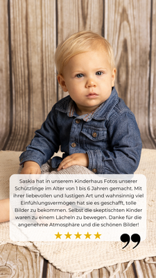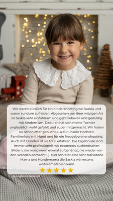 "Das Shooting war super entspannt. Sie nimmt sich viel Zeit. Die Bilder sind echt schön geworden mit den Kids. Sie ist wirklich zum empfehlen 😊"